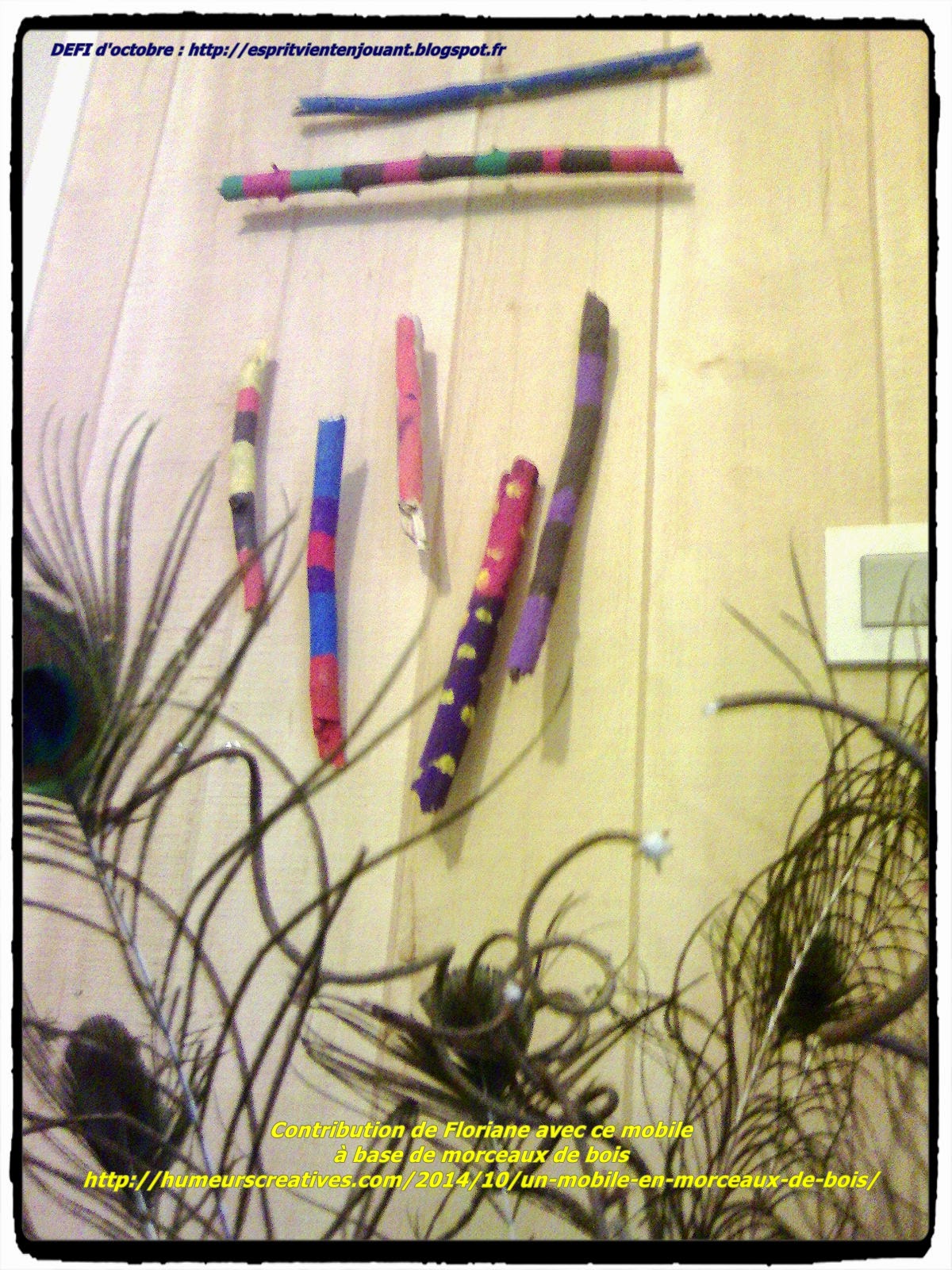 - Floriane du blog Humeurs créatives, a utilisé les bâtons peints par sa fille pour en faire un joli mobile qui fait de petits bruits en se mettant en mouvement grâce au vent !!! Les explications c'est ICI.